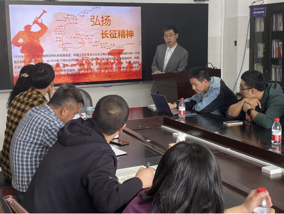 张涛授课内容为《长征精神》。他说道,伟大长征为什么能取得胜利,党的领导是党和人民事业成功的根本保障,也是今天我们讲长征胜利的要害所在、最关键所在。因此,在新时代,我们必须大力弘扬长征精神。