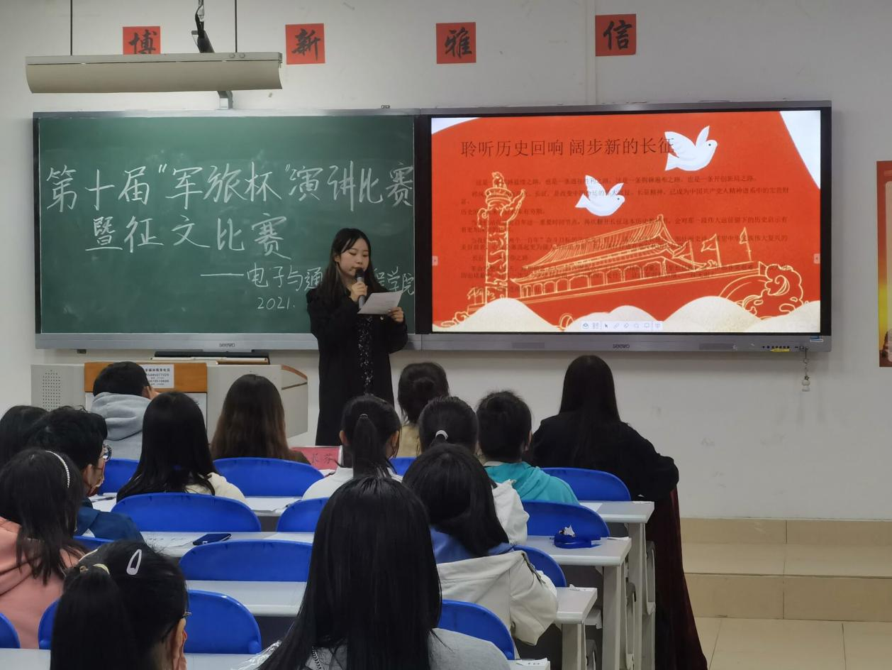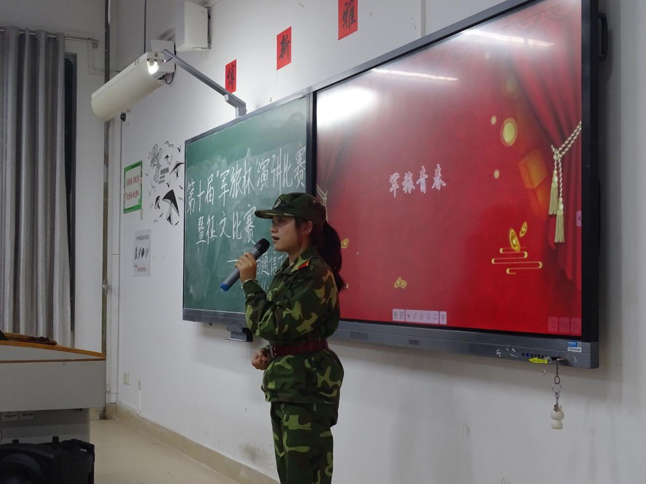 本次决赛主要目的是交流同学们在大学军训中的感受以及收获。大会开始,由主持人介绍参加会议的嘉宾和会议流程,然后各位参赛选手依次上台进行演讲。参赛选手演讲后会进行抽签并即兴演讲,在同学们激昂的演讲以及那一身身军训服中,大家真切的感受到他们在军训中的收获。在同学们演讲的间隙中,宣读了党史,聆听历史回响,阔步新的长征。最后由主持人公布最终获奖名单,并由嘉宾为获奖同学颁奖。