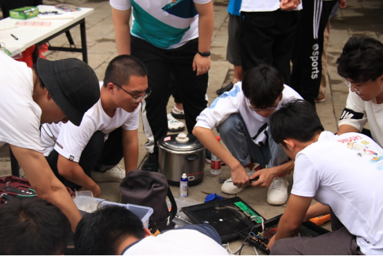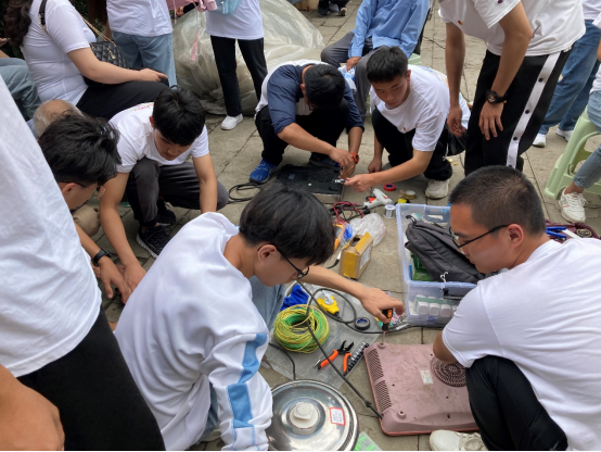 电子与通信工程学院团总支书记杨梅带领电子信息协会的成员们在贺龙广场展开了“家电维修送服务”的实践活动,大学生志愿服务队充分发挥了专业优势,实践服务走出校园,走进乡村,将课堂教学与实践教学融合,充分发挥了所学知识在实践中的运用。活动初始经过同学们的耐心讲解,村民们纷纷拿来了家里坏掉的电磁炉、电饭锅、电风扇等电器,随后各位同学都参与到了家电维修服务中。维修过程中,当地的村民们对志愿者的志愿活动表示赞同和鼓励。