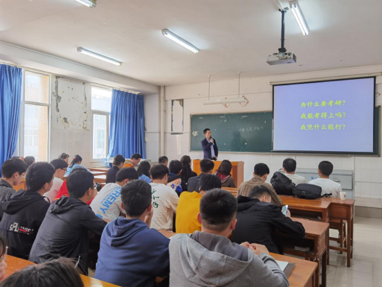 张文聪从自身经历、为什么要考研、什么是研究生、如何考研四个方面对同学们进行考研指导。他以自身经历给同学们鼓励,只要有梦想,就没有什么达不到的并列举了历年考研数据以及本专科人数进行了清晰的对比,阐述了现在本科考研已经是趋势以及本科就业的竞争压力。最后他告诉同学们既然选择了就要坚持,因为成功的人注定是孤独的,只有耐得住孤独才能走向成功!