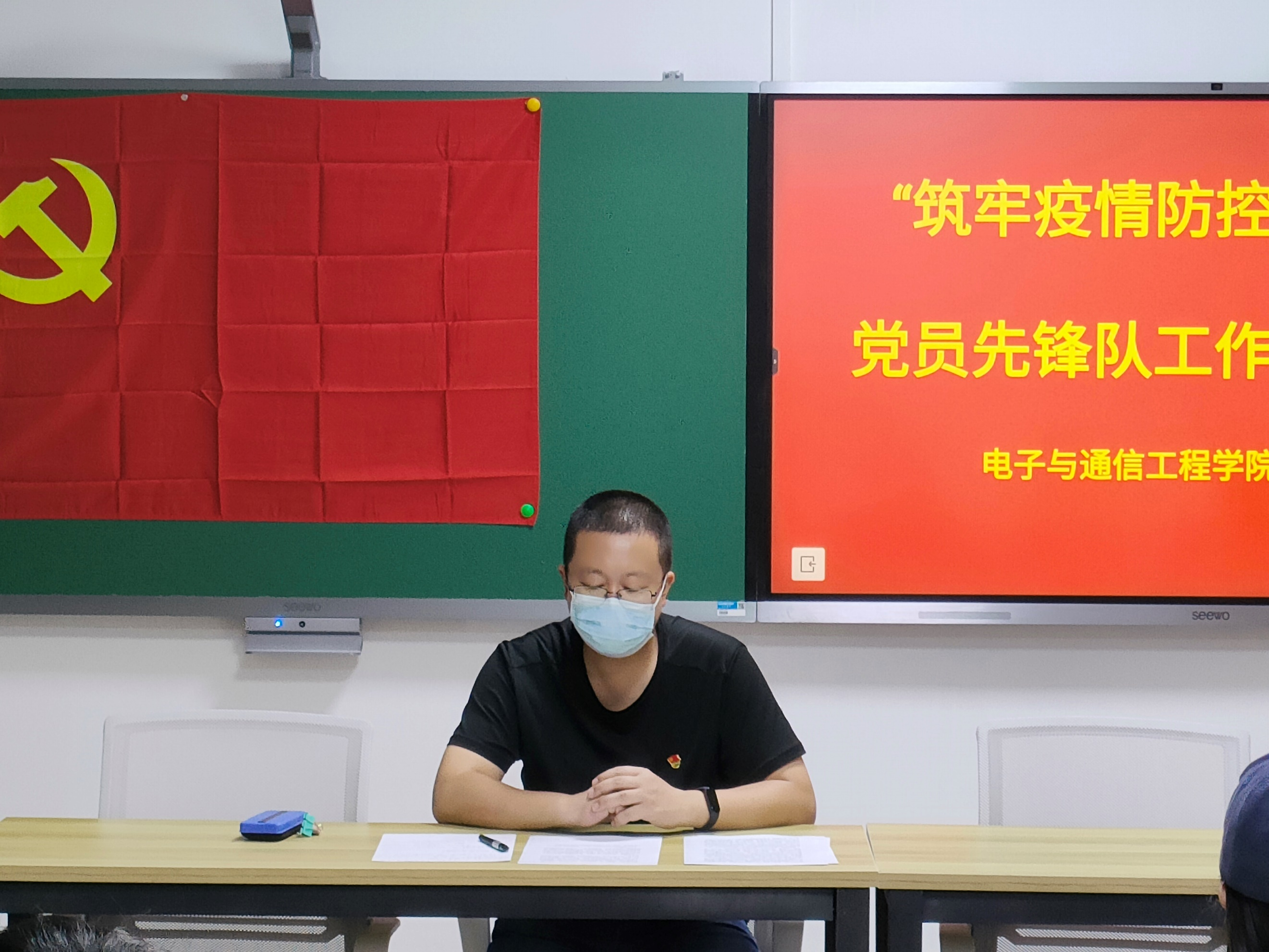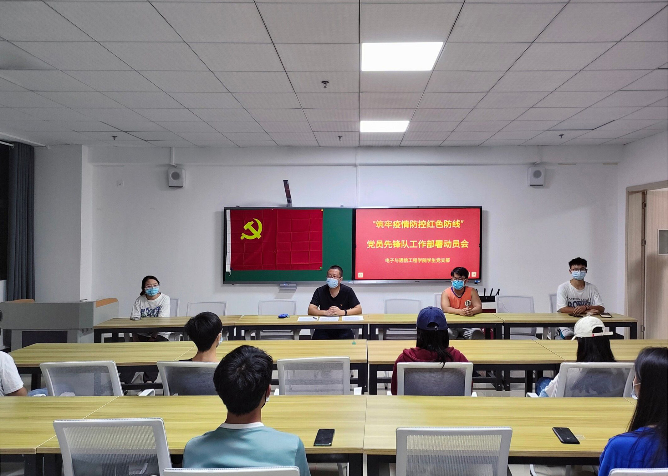 2022年9月7日,电子与通信工程学院党委副书记孙健在综合楼1307教室针对学生党支部开展了“筑牢疫情防控红色防线”党员先锋队工作部署动员会,贯彻落实习近平总书记关于疫情防控工作的重要指示精神。