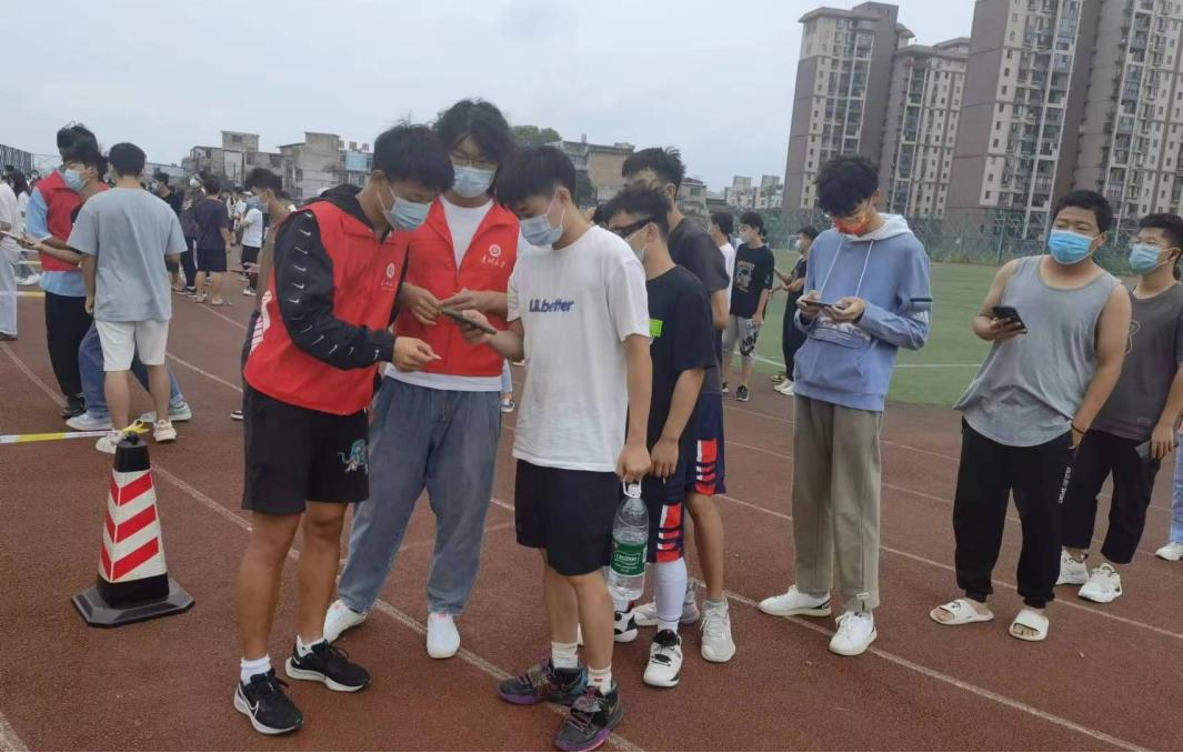图1 袁晟智与志愿者一起查看同学们的建康码