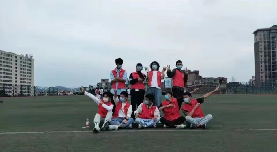 在进行了一天的志愿服务后,袁晟智所在的志愿者小队进行了轻松的合影,也体现了他们积极向上的心态。
