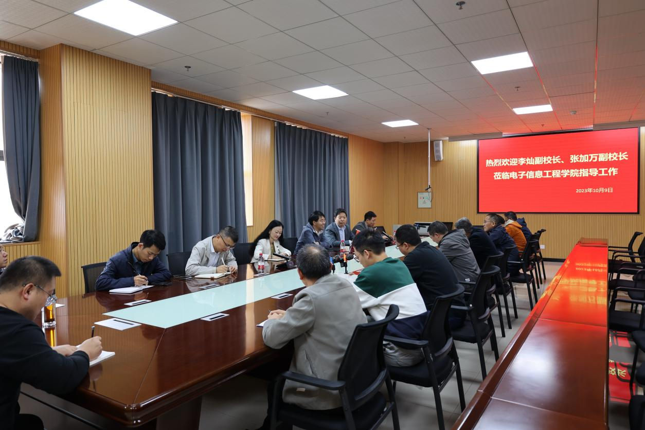 2023年10月10日上午,副校长李灿和副校长张加万到我院调研指导。调研座谈会由学院副院长彭晓珊主持。校办、科研处相关人员陪同,我院党政领导班子全体成员、教研室主任、实验室负责人、博士、科级干部等参加了本次调研座谈会。