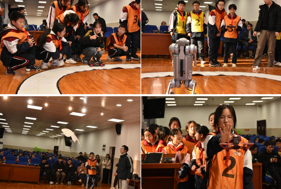 许多同学在观看完演示后表现出极大的兴趣,并踊跃上台尝试操作这些智能设备。他们亲自操控视觉小车巡线、指挥机器狗做动作,甚至控制蝴蝶扑翼机和Tello完成简单的飞行任务。这样的实操机会不仅加深了同学们对科技的理解,也极大地提升了他们对科技创新的热情。