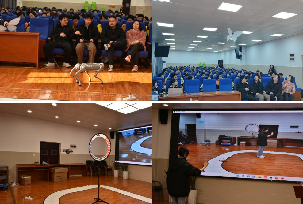 机器狗的表演将现场气氛推向了一个高潮,它不仅能够跳舞,还进行了侧翻和作揖等互动动作,让同学们感受到了机器人技术的趣味性。蝴蝶扑翼机以随机飞行的方式展示了仿生学的魅力,其逼真的飞行姿态仿佛一只真正的蝴蝶在空中翩翩起舞,令人惊叹不已。最后,无人机和Tello飞机的精彩飞行秀更是将活动带向了顶点,无人机精准地完成了钻圈动作,而Tello飞机则通过手势识别与同学们进行了亲密互动,展示了现代航空技术的先进性。