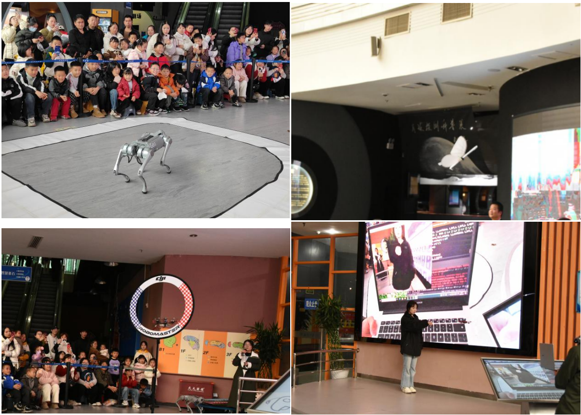 本次活动在贵州科学技术馆一楼展厅举行,实验室成员卢淘担任主持人详细介绍了无人机、智能小车、机器狗、仿生蝴蝶等人工智能领域的研究内容,并通过生动有趣的案例,向孩子们讲解了人工智能的基本原理和应用场景。孩子们听得津津有味,不时提问互动,展现出对科技知识的浓厚兴趣。
